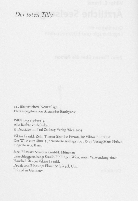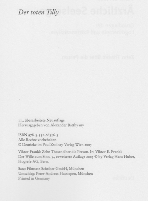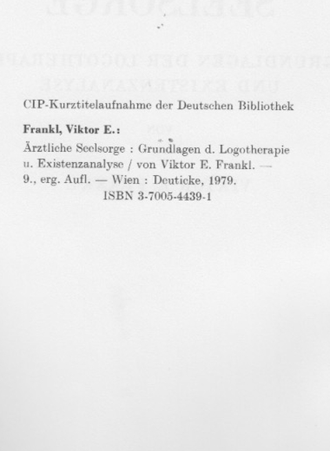 | ----- Ärztliche Seelsorge. Grundlagen der Logotherapie und Existenzanalyse. |