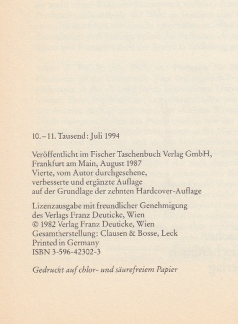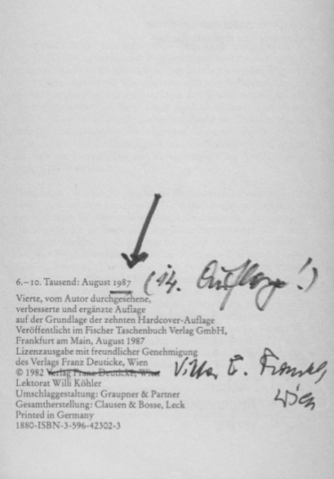 | Franz Deuticke, Wien, und Fischer Taschenbuch 42302, Frankfurt am Main / 1946-1997 / Deuticke 2017 |