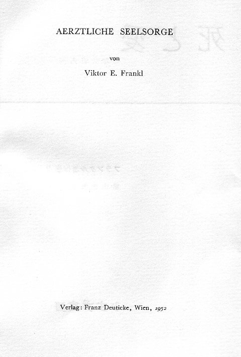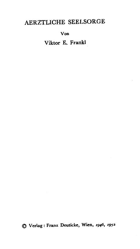 | Ärztliche Seelsorge. ----- The Doctor and the Soul. From Psychotherapy to Logotherapy. |