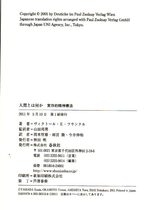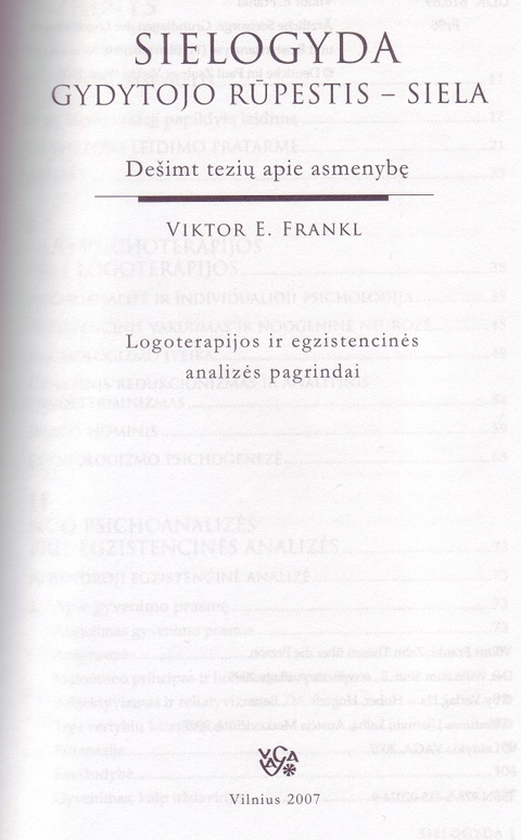 | Verschiedene Kapitel aus Ärztliche Seelsorge, Man's Search for Meaning und Der unbewusste Gott. ----- Osnovy logoterapii / Psichoterapija i religija. |