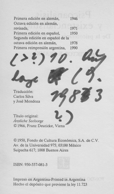 | Ärztliche Seelsorge. ----- Psicoanalisis y existencialismo. |