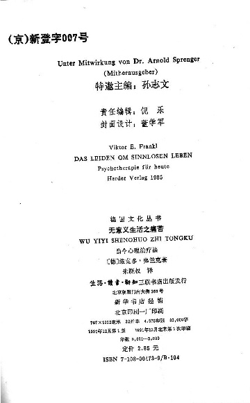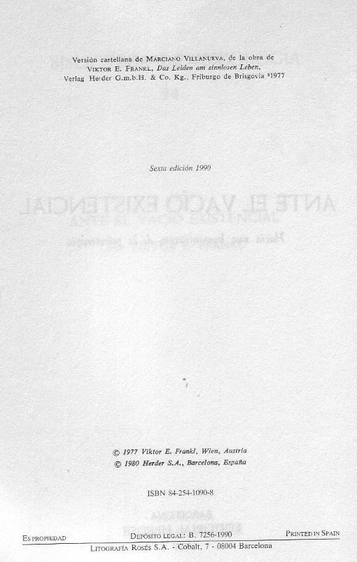 | Das Leiden am sinnlosen Leben. ----- Ante el vacio existencial. Hacia una humanizacion de la psicoterapia. |