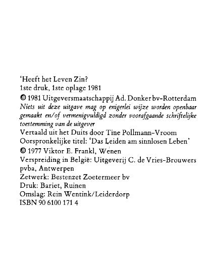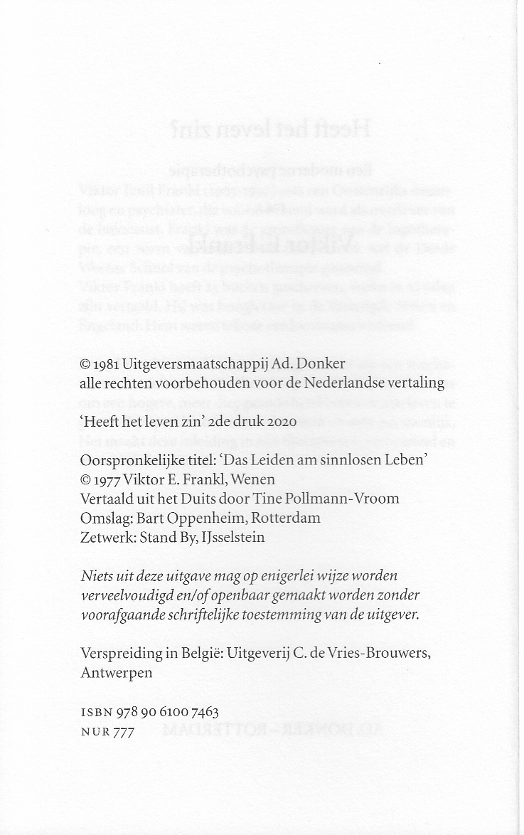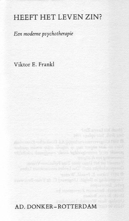 | Das Leiden am sinnlosen Leben. ----- Heeft het leven zin? Een moderne Psychotherapie. |