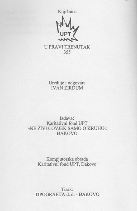 Knjiznica "U pravi trenutak", Karitativni fond UPT, Djakovo 2011 ISBN 978-953-208-391-0 |