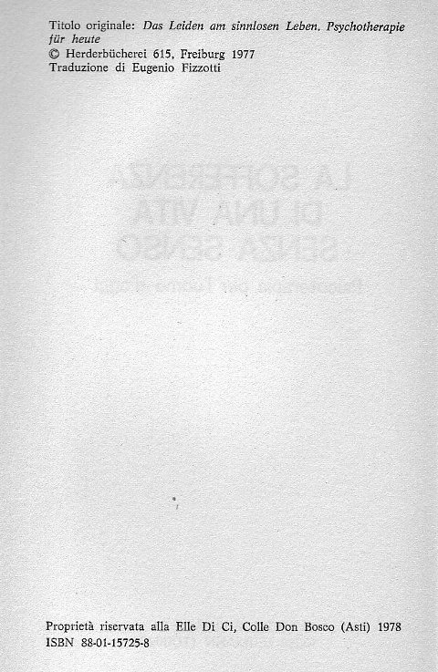 | Das Leiden am sinnlosen Leben. ----- La sofferenza di una vita senza senso. Psicoterapia per l'uomo d'oggi. |