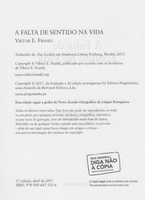 | Das Leiden am sinnlosen Leben. ----- A Falta de Sentido na Vida. Psicoterapia para os dias de hoje. |