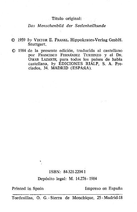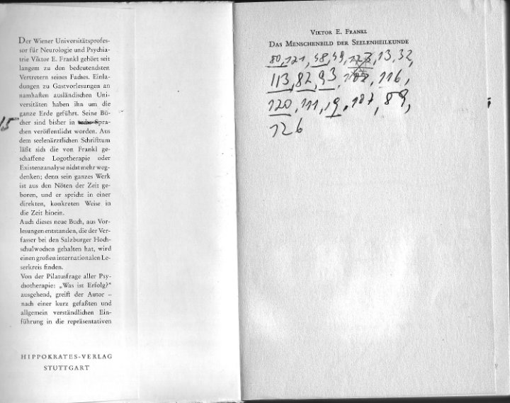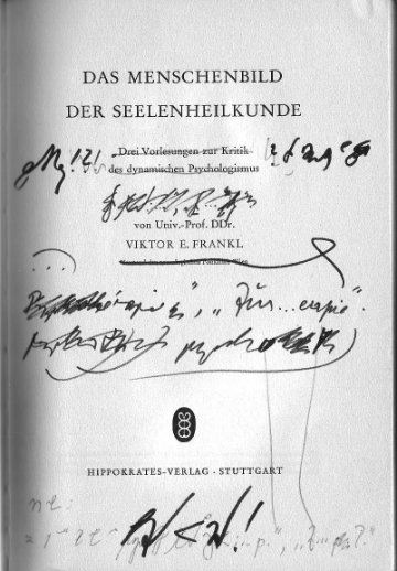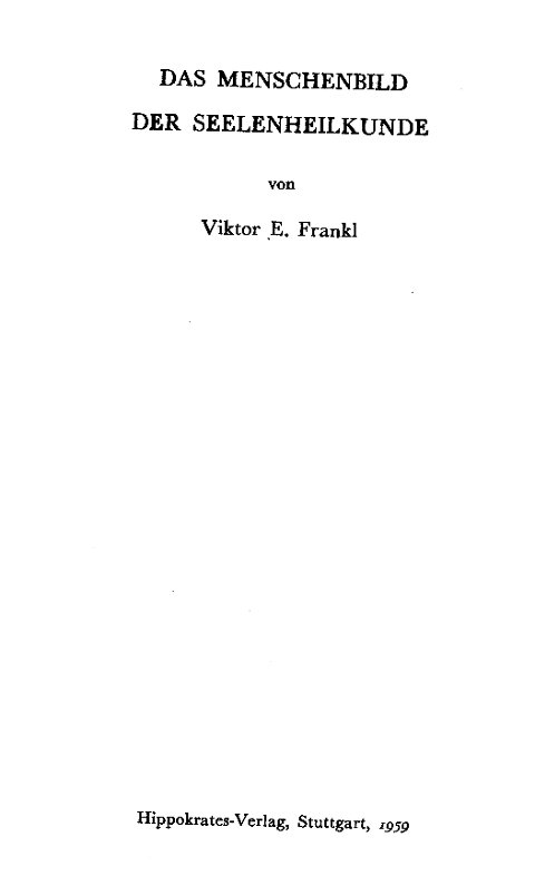 | Das Menschenbild der Seelenheilkunde (Ü aus Der Mensch auf der Suche nach Sinn, Herder Fr.) ----- Alla ricerca di un significato della vita. Per una psicoterapia riumanizzata. |
