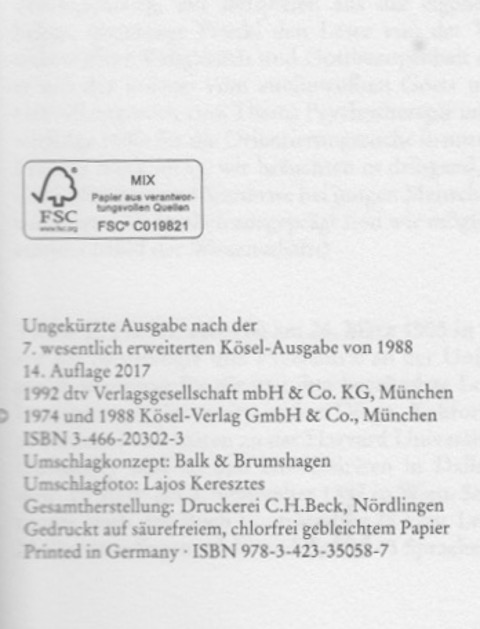 Deutscher Taschenbuch Verlag (dtv 35058) München 1992-2023 (19. Aufl.) ISBN ISBN 978-3-423-35058-7 |