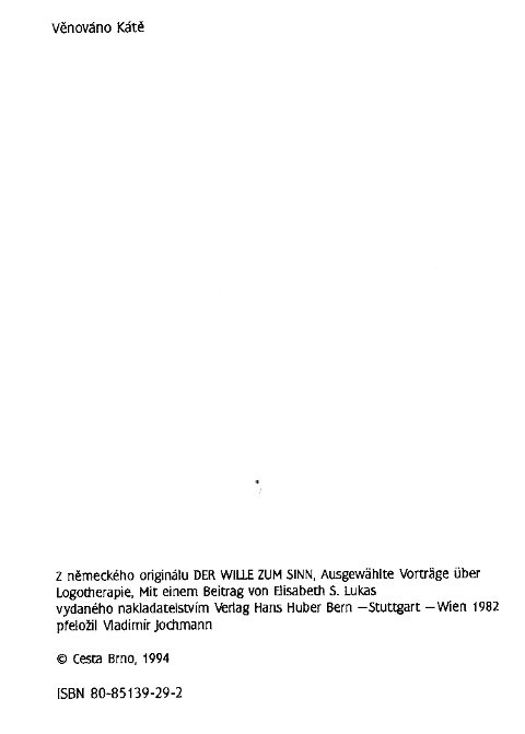 | Der Wille zum Sinn. ----- Vule ke smyslu: Vybrane prednasky o logoterapii. |