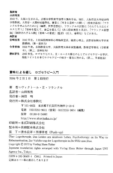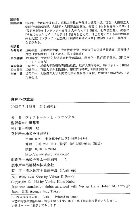 | Der Wille zum Sinn. ----- Imi e no ishi / Imi ni yoru iyashi. |