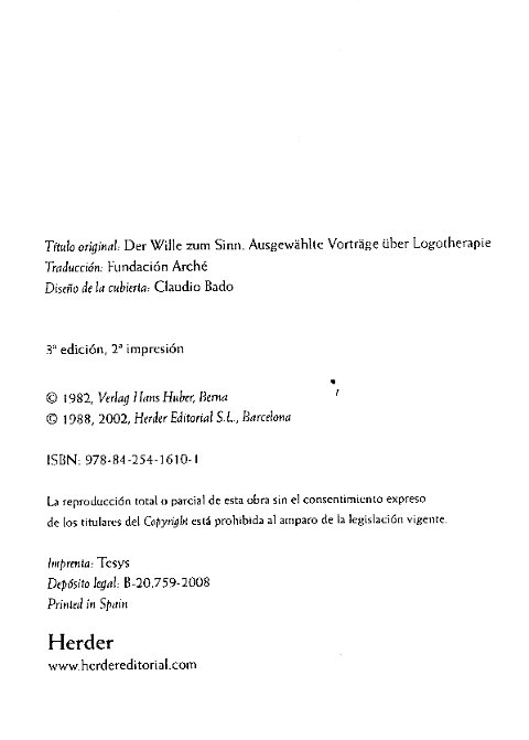 | Der Wille zum Sinn. ----- La voluntad de sentido. Conferencias escogidas sobre logoterapia. |