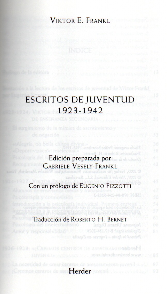 | Viktor Frankl - Frühe Schriften. ----- Frankl, Viktor: Escritos de juventud 1923-1942. |