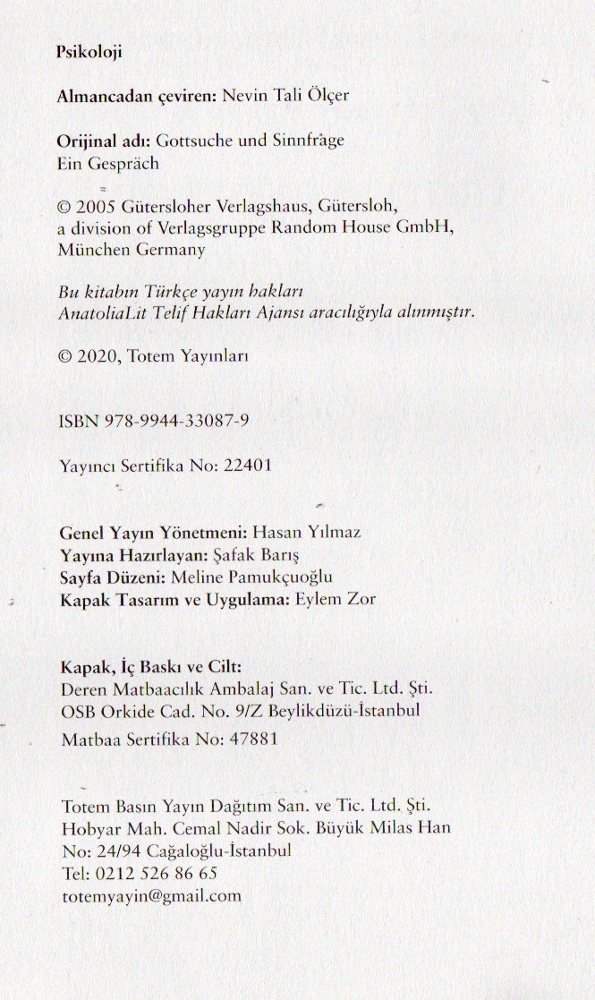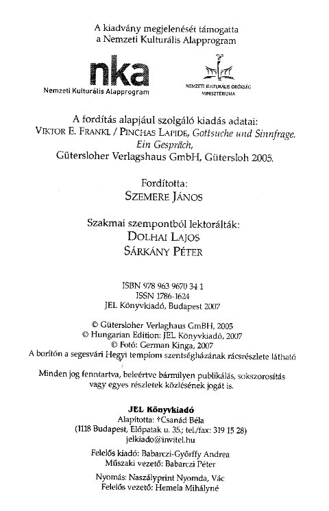 | JEL Kiadó, Budapest 2007 / 978-963-9670-34-1 / Istenkeresés és értelemkérdés. Párbeszéd., |