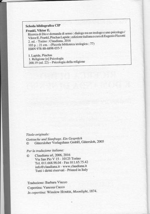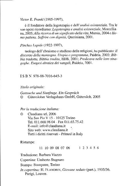 Frankl, Viktor E., e Lapide, Pinchas; a cura di Eugenio Fizzotti |