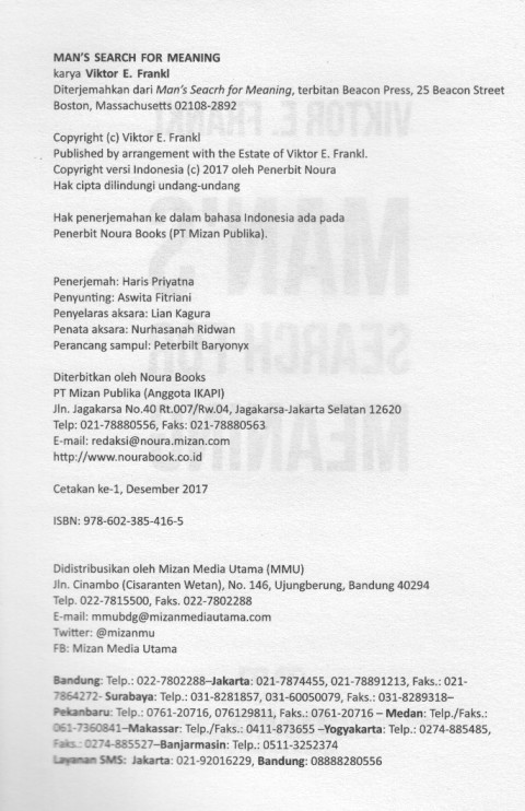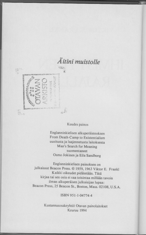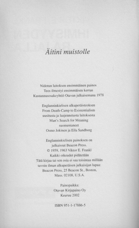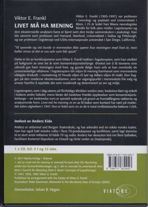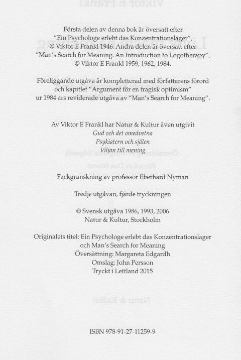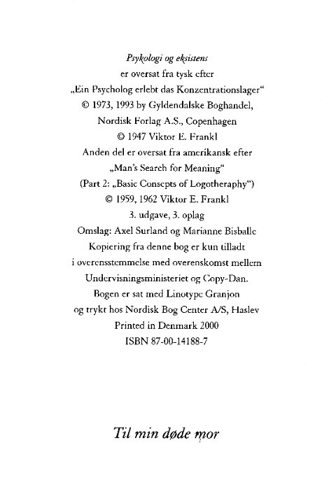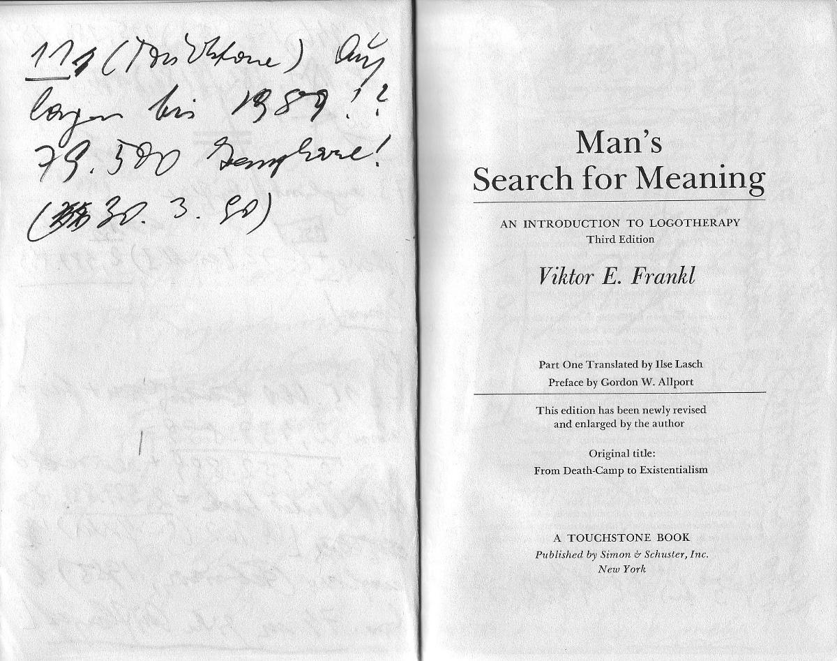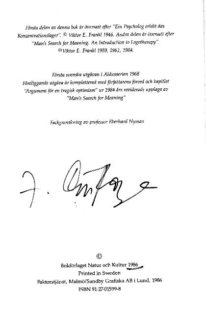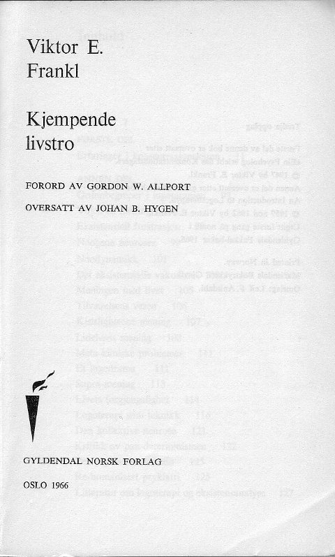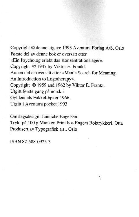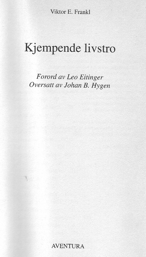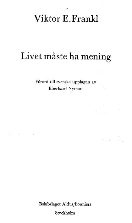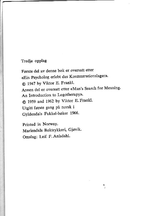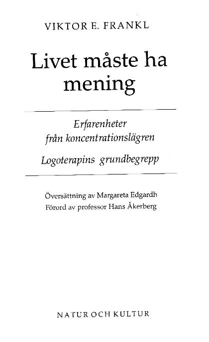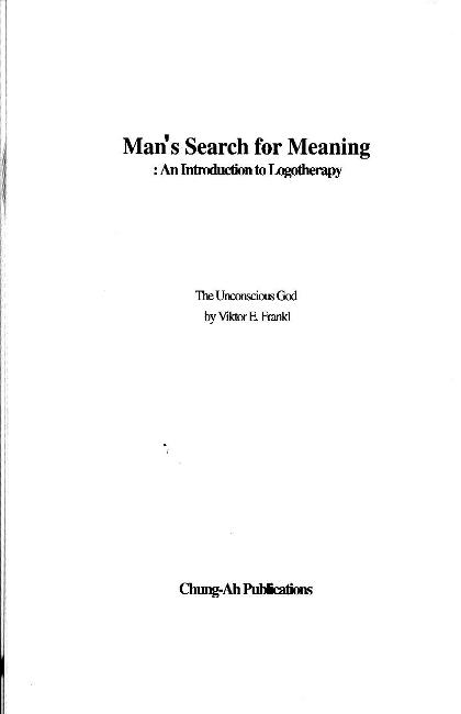 | Man's Search for Meaning. ----- Livet må ha mening. |