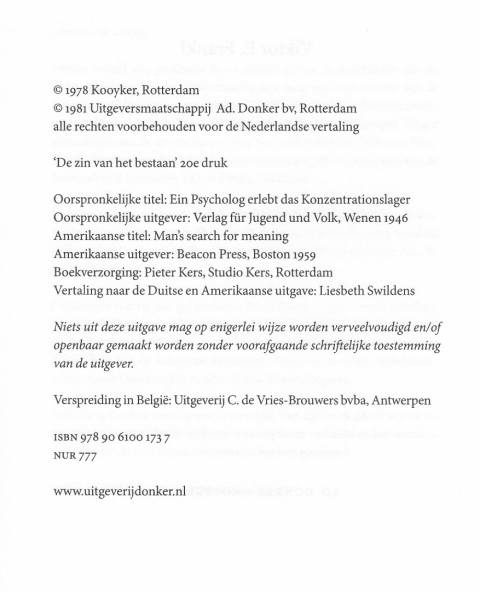 | Man's Search for Meaning ----- De zin van het bestaan |