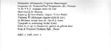 | Hollandsch Afrikaansche Uitgevers Maatschappij, Kaapstad/Pretoria. / 1975. / 0 7986 0277 5. |