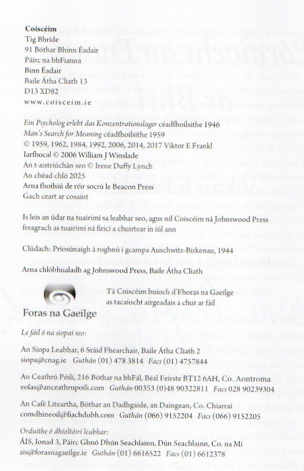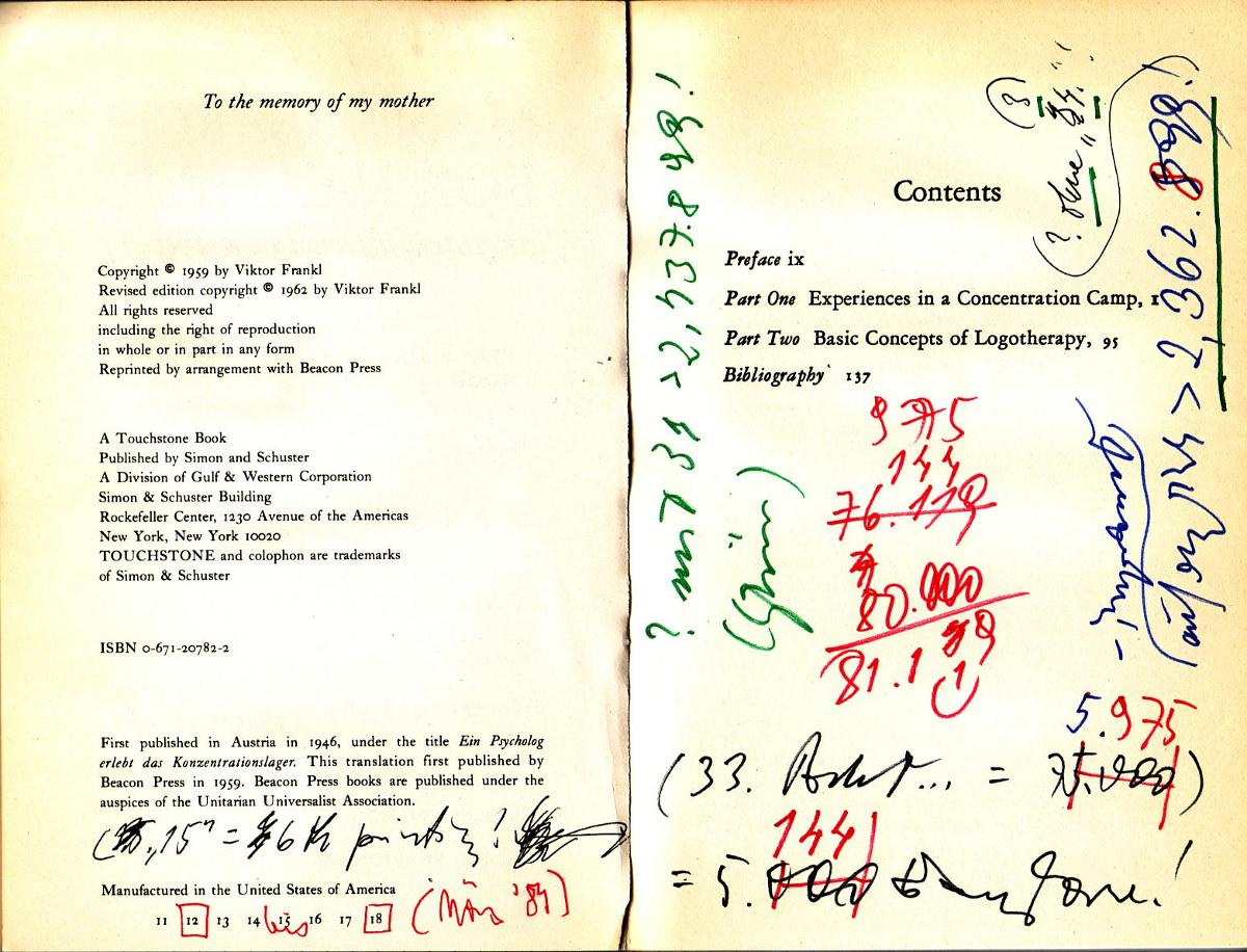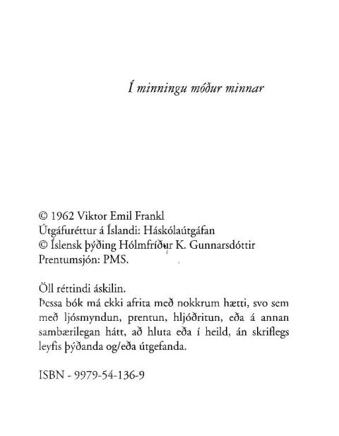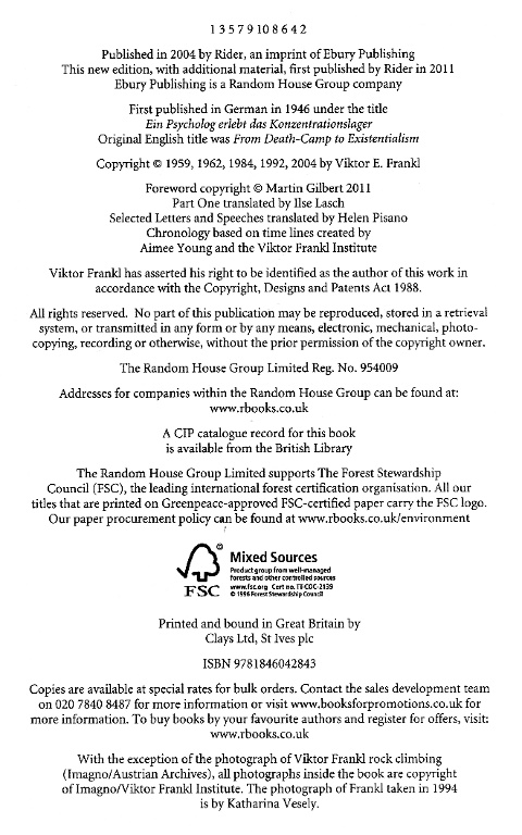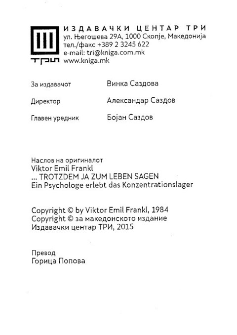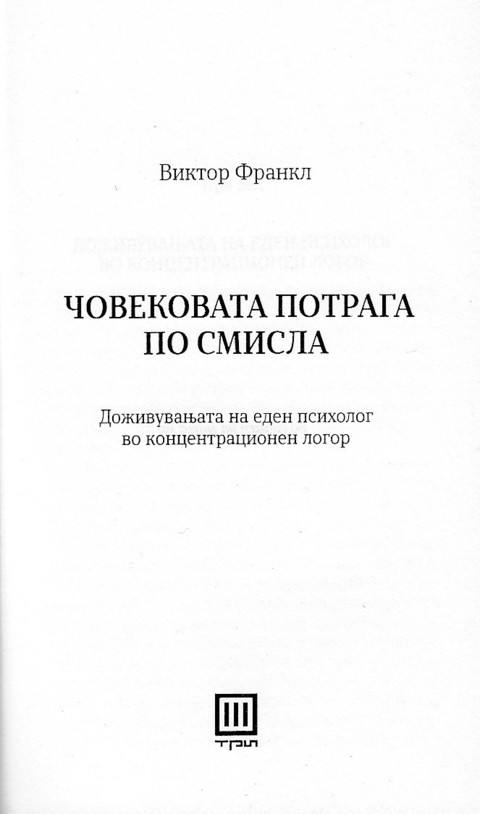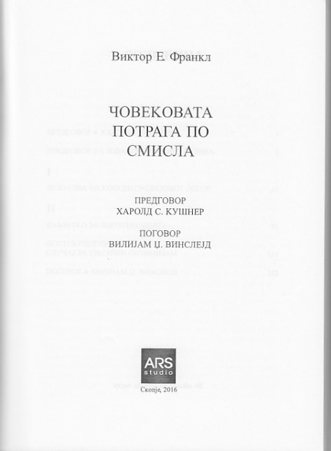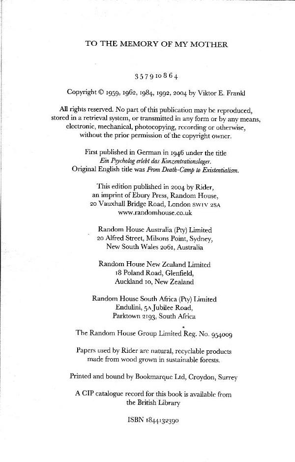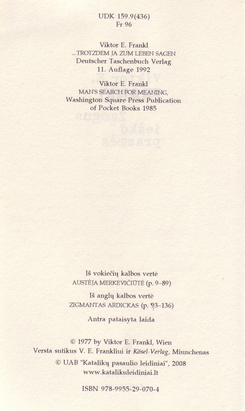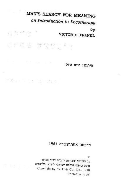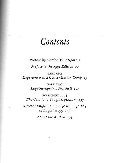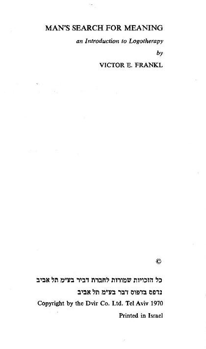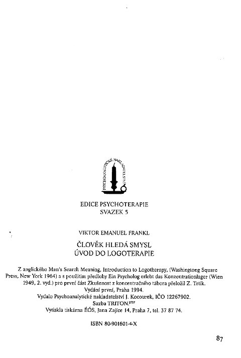 | Man's Search for Meaning. An Introduction to Logotherapy. ----- Tchovekt b trsenje na smysl. |