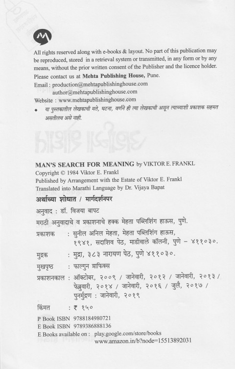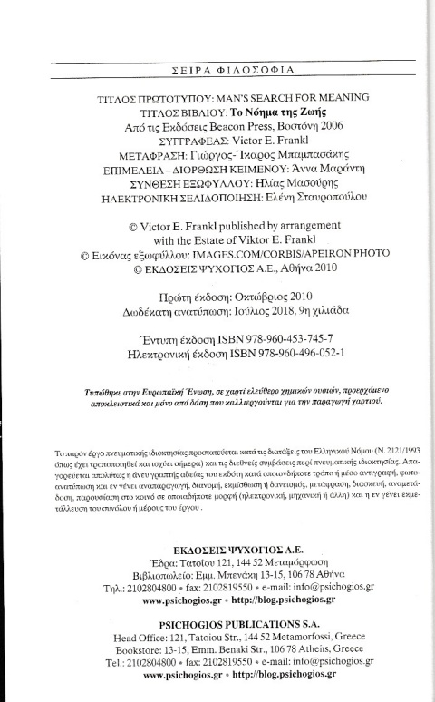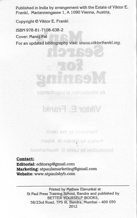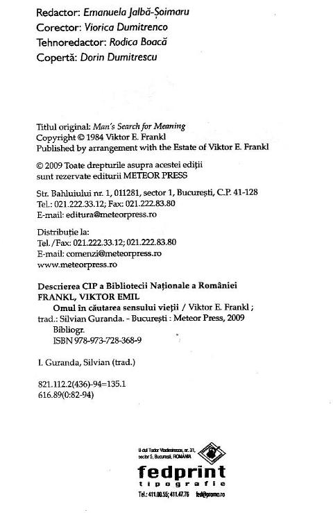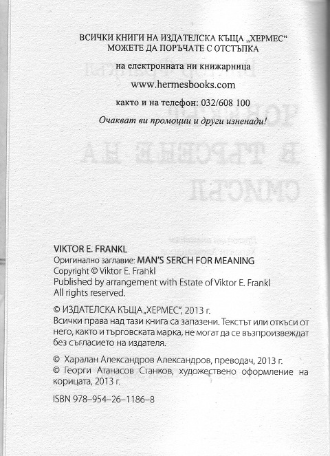 | Man's Search for Meaning. ----- Omul în căutarea sensului vieții. |