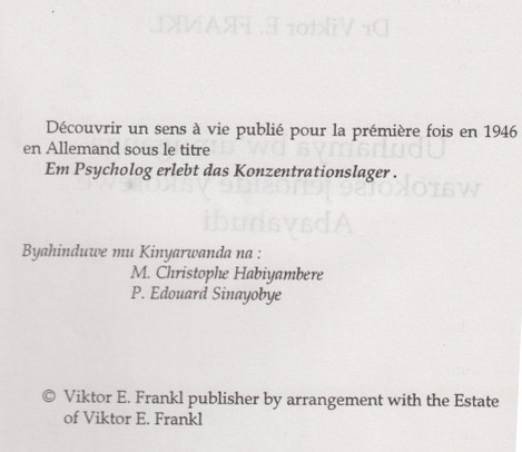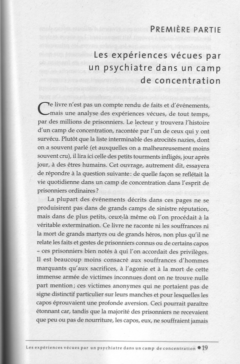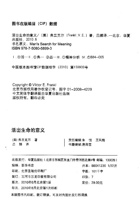 | Man's Search for Meaning. ----- Huo chu yiyi lai — cong jizhongying shuodao cunzaizhuyi (Meaning as emergence out of life experience). |