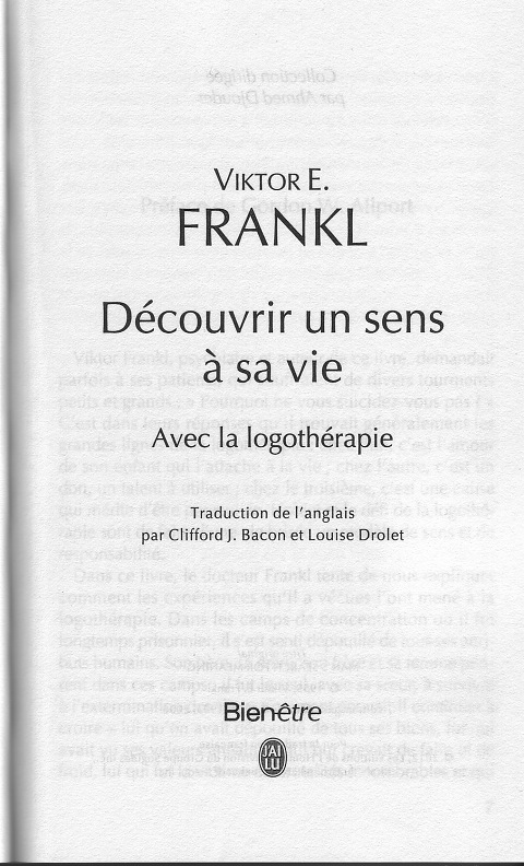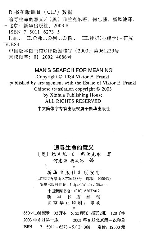 | Man's Search for Meaning. ----- Zhuixun shengming de yiyi. |