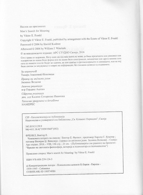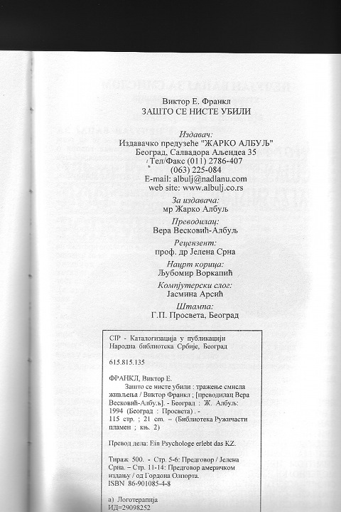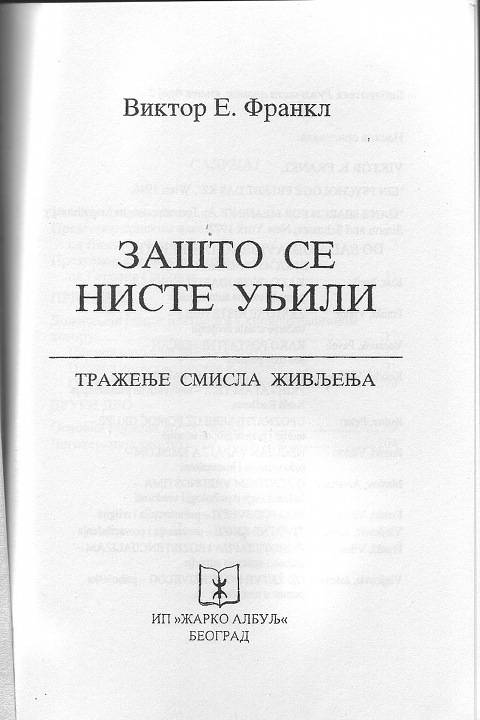 | Man's Search for Meaning. ----- Zašto se niste ubili. |