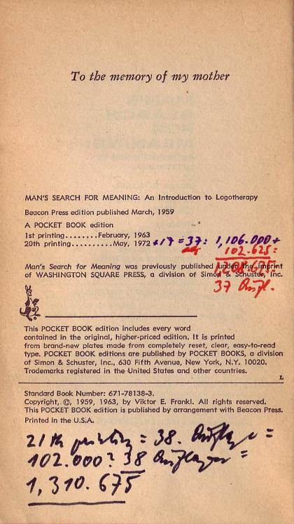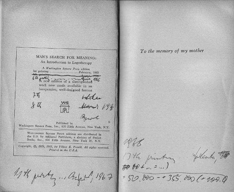 | Man's Search for Meaning ----- Man's Search for Meaning. An Introduction to Logotherapy. |