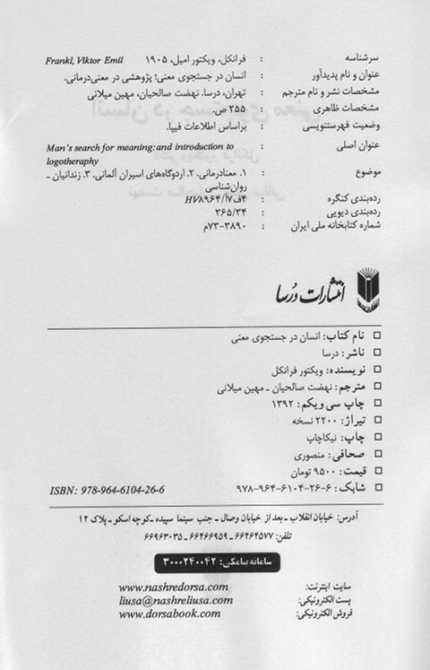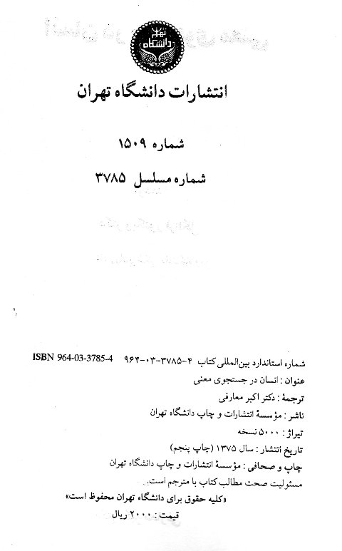| Man's Search for Meaning. ----- Insan dar jostojooye ma'na. |