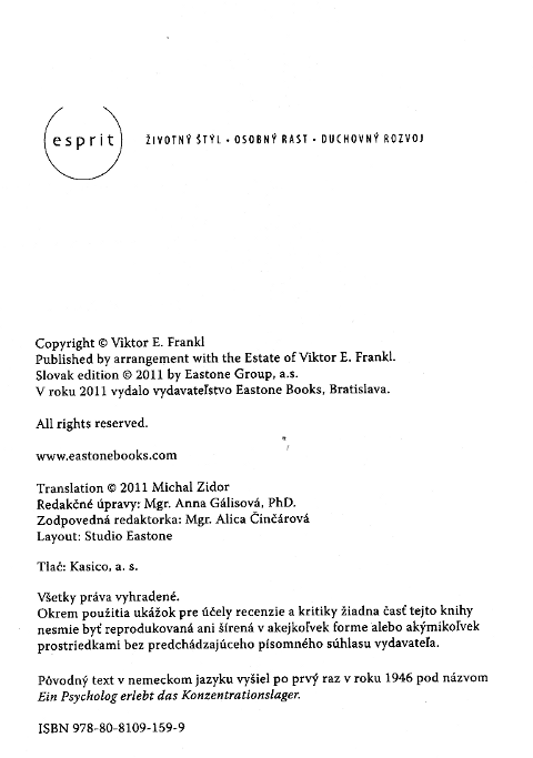 Eastone Books, Bratislava 2011 ISBN 978-80-8109-159-9 |
