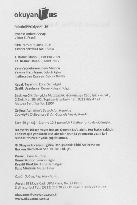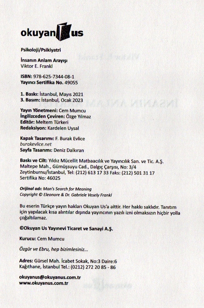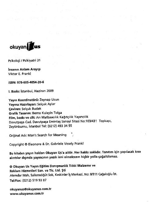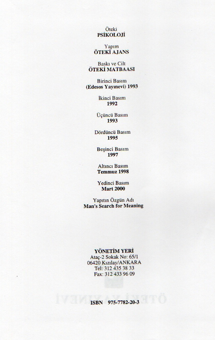 | Man's Search for Meaning. ----- İnsanın Anlam Arayışı. |