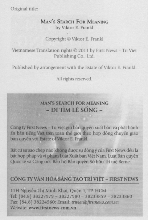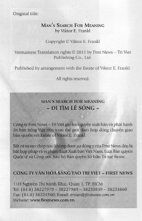 | Man's Search for Meaning. ----- Đi tìm lẽ sống. |