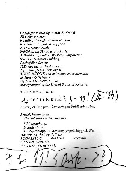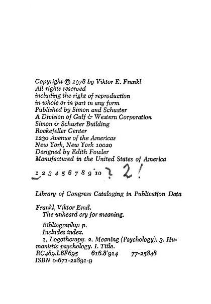 | The Unheard Cry for Meaning. ----- - |