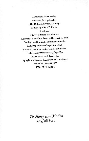 | The Unheard Cry for Meaning. ----- Det overhorte rab om mening. |