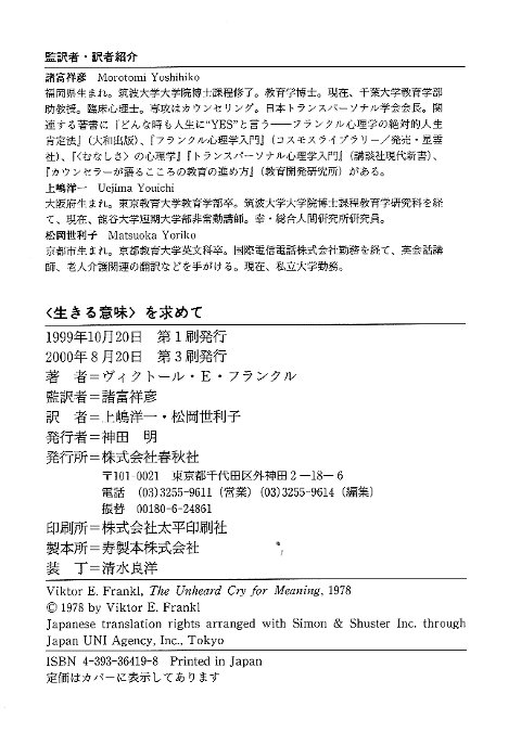 | The Unheard Cry for Meaning. ----- Ikiru imi wo motomete. |