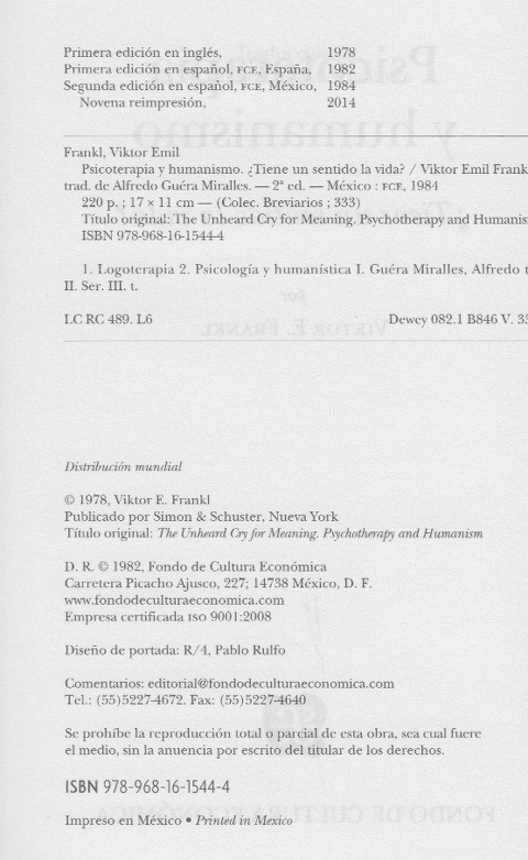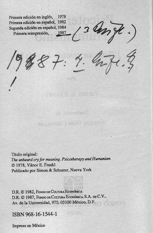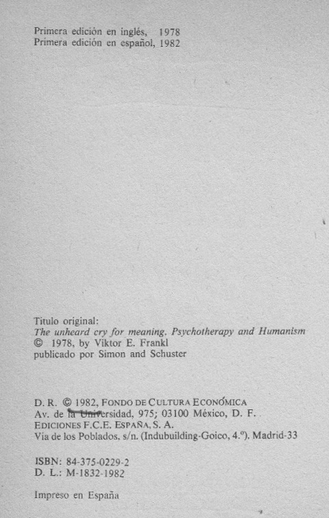 | The Unheard Cry for Meaning. ----- Psicoterapia y Humanismo. Tiene un sentido la vida? |