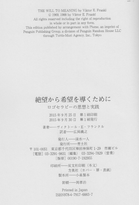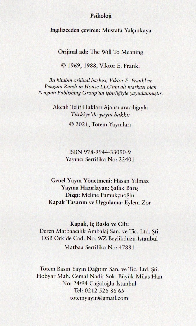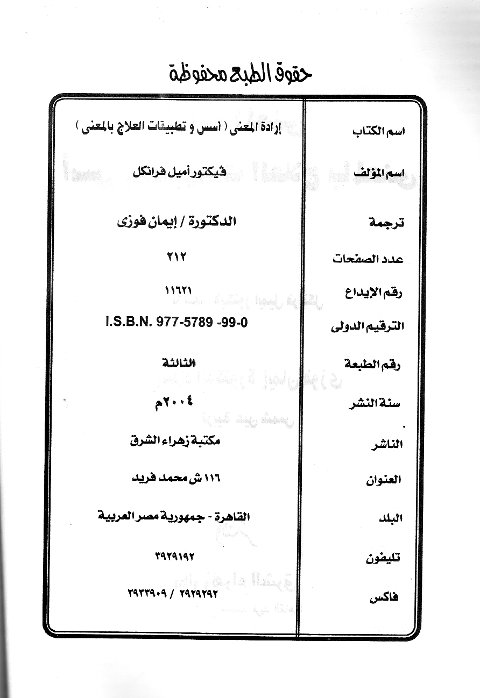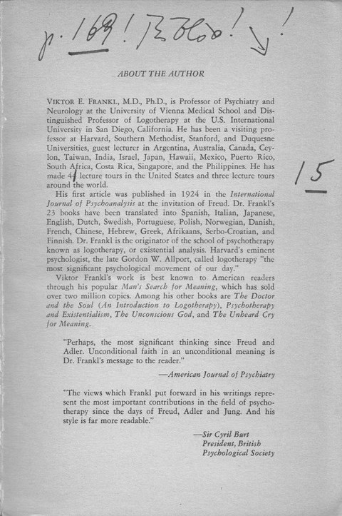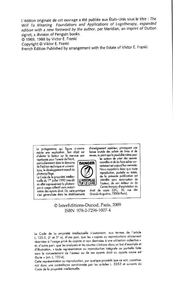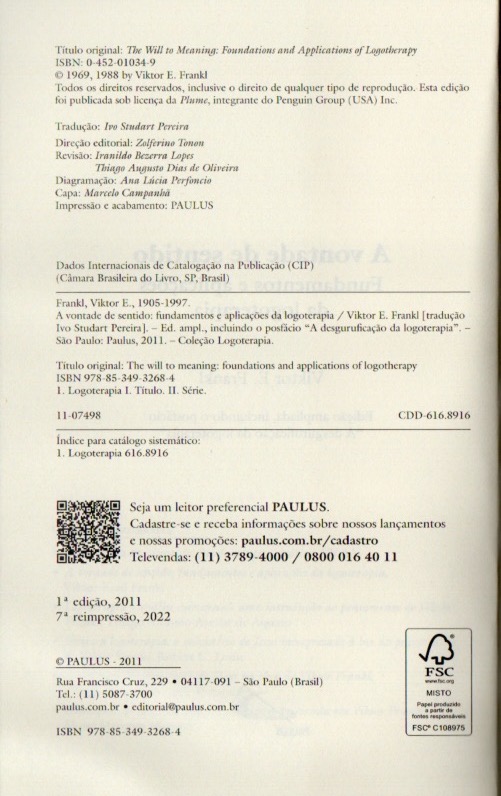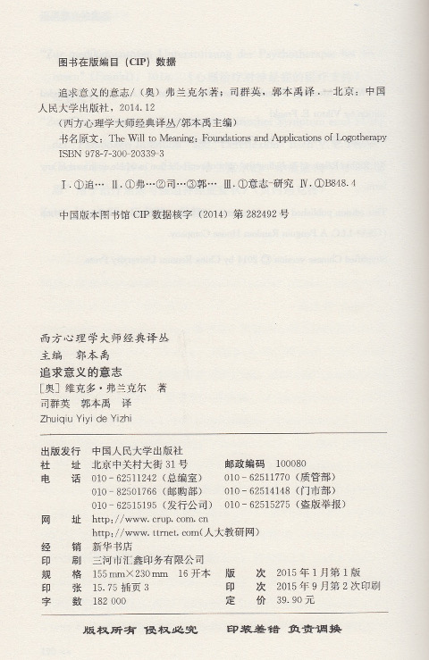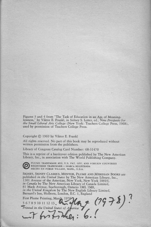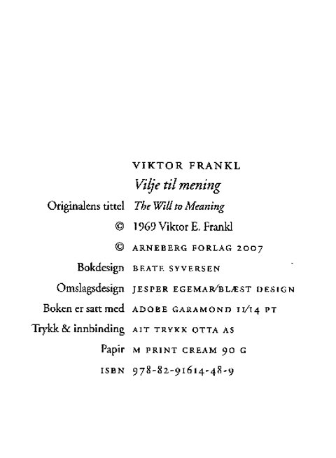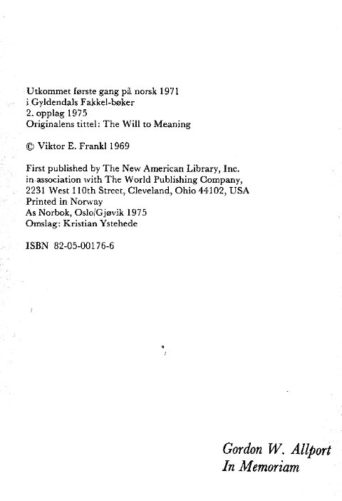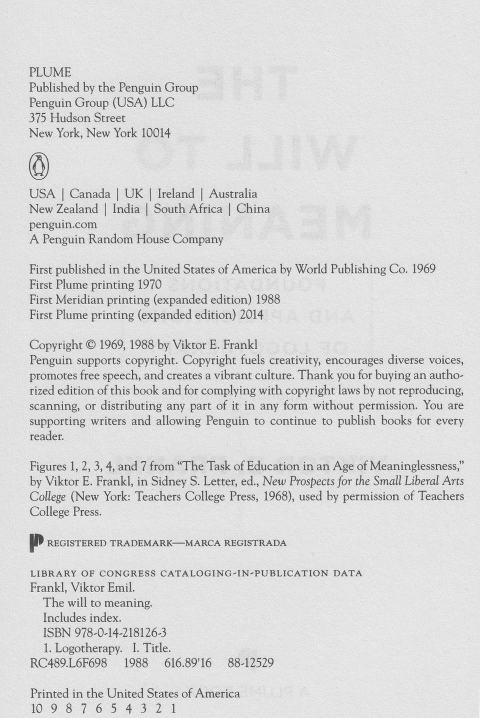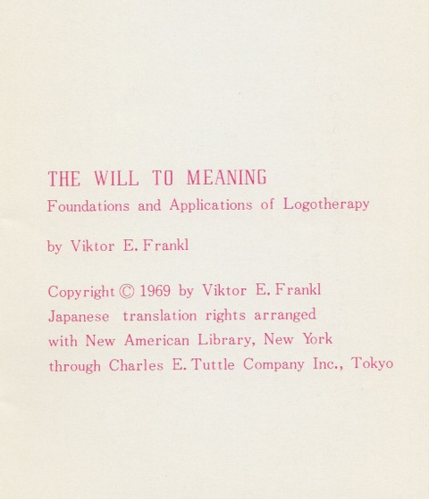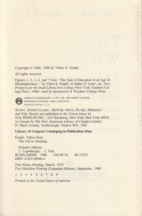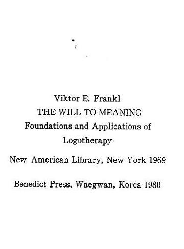 | ----- The Will to Meaning: Foundations and Applications of Logotherapy. |