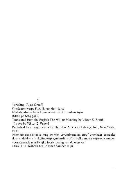 | The Will to Meaning. ----- De wil zinvol te leven. Logotherapie als hulp in deze tijd. |