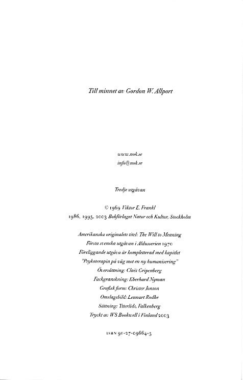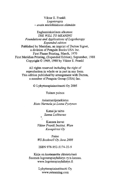 | The Will to Meaning / Foundations and Applications of Logotherapy (Expanded edition). ----- Logoterapia - avain mielekkääseen elämään. |