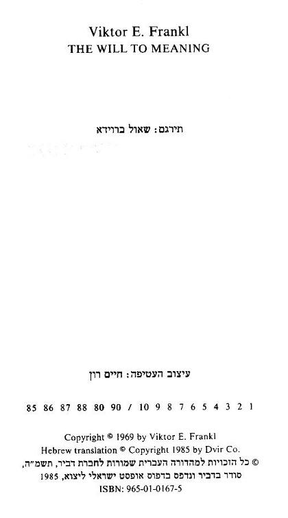 | The Will to Meaning. ----- Ha'sheifa le'mashmaut. |