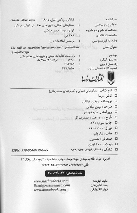 | The Will to Meaning. ----- Ma'na darmani, Mabani va Karbordha. |