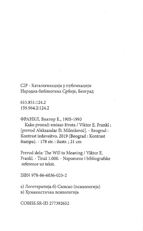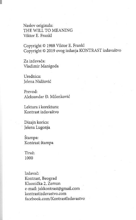 | The Will to Meaning. ----- Kako pronaći smisao života. |