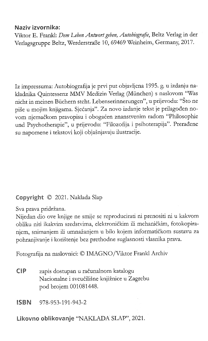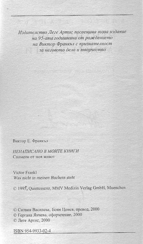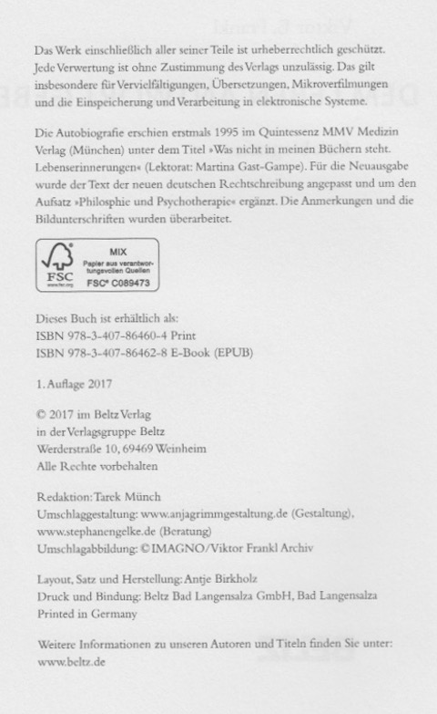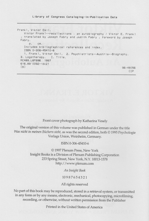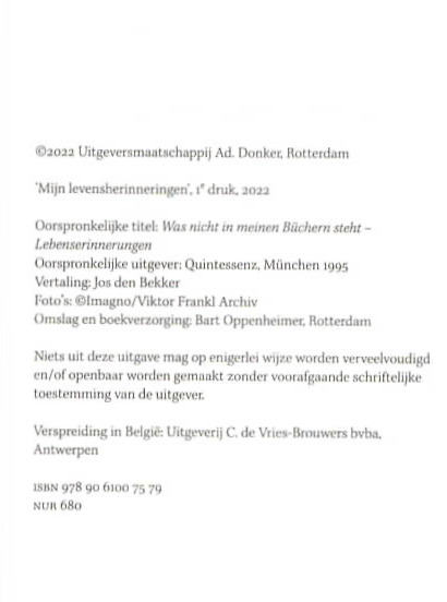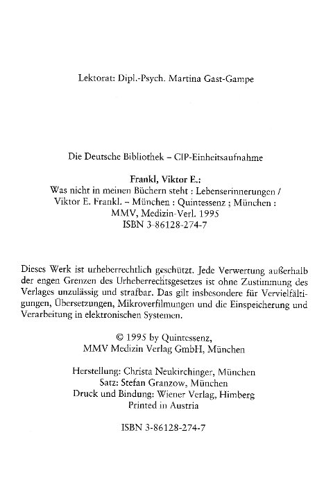 | Was nicht in meinen Büchern steht. Erinnerungen. ----- Viktor Frankl - Recollections. An Autobiography. |