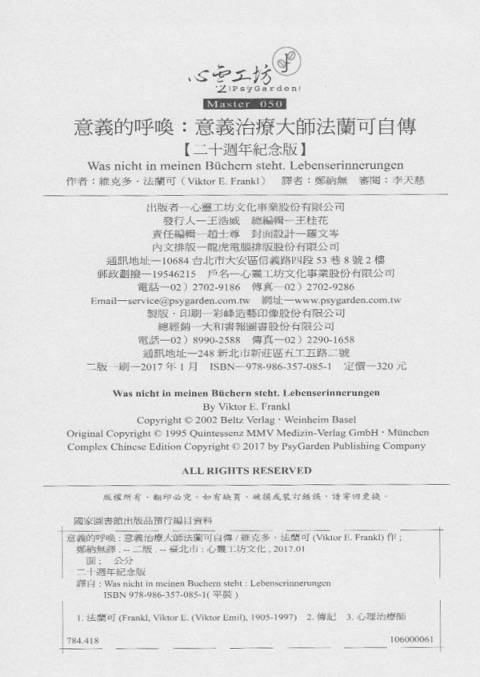 PsyGarden Publishing Company, Taiwan 2017 ISBN 978-986-80248-0-3 |