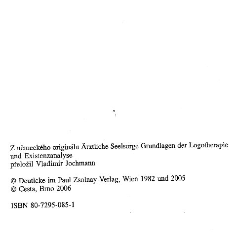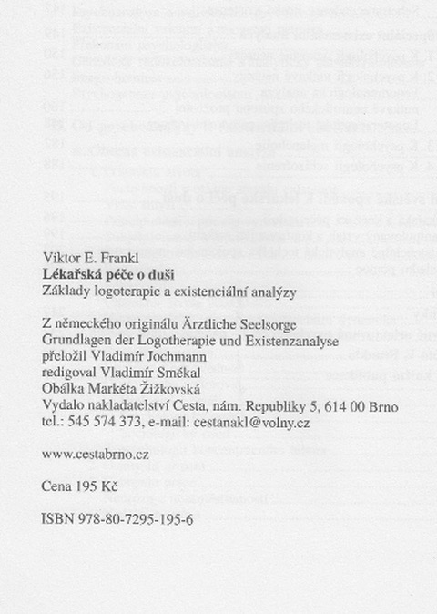 | Ärztliche Seelsorge. Grundlagen der Logotherapie und Existenzanalyse. ----- Lekarska pece o dusi. Zaklady logoterapie a existencialni analysy. |