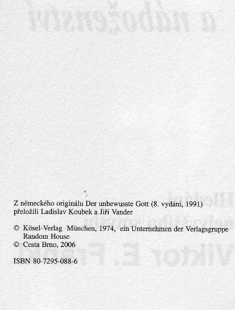 | Der unbewusste Gott. ----- Psychoterapie a nabozenstvi. Hledani nejvyssiho smyslu. |