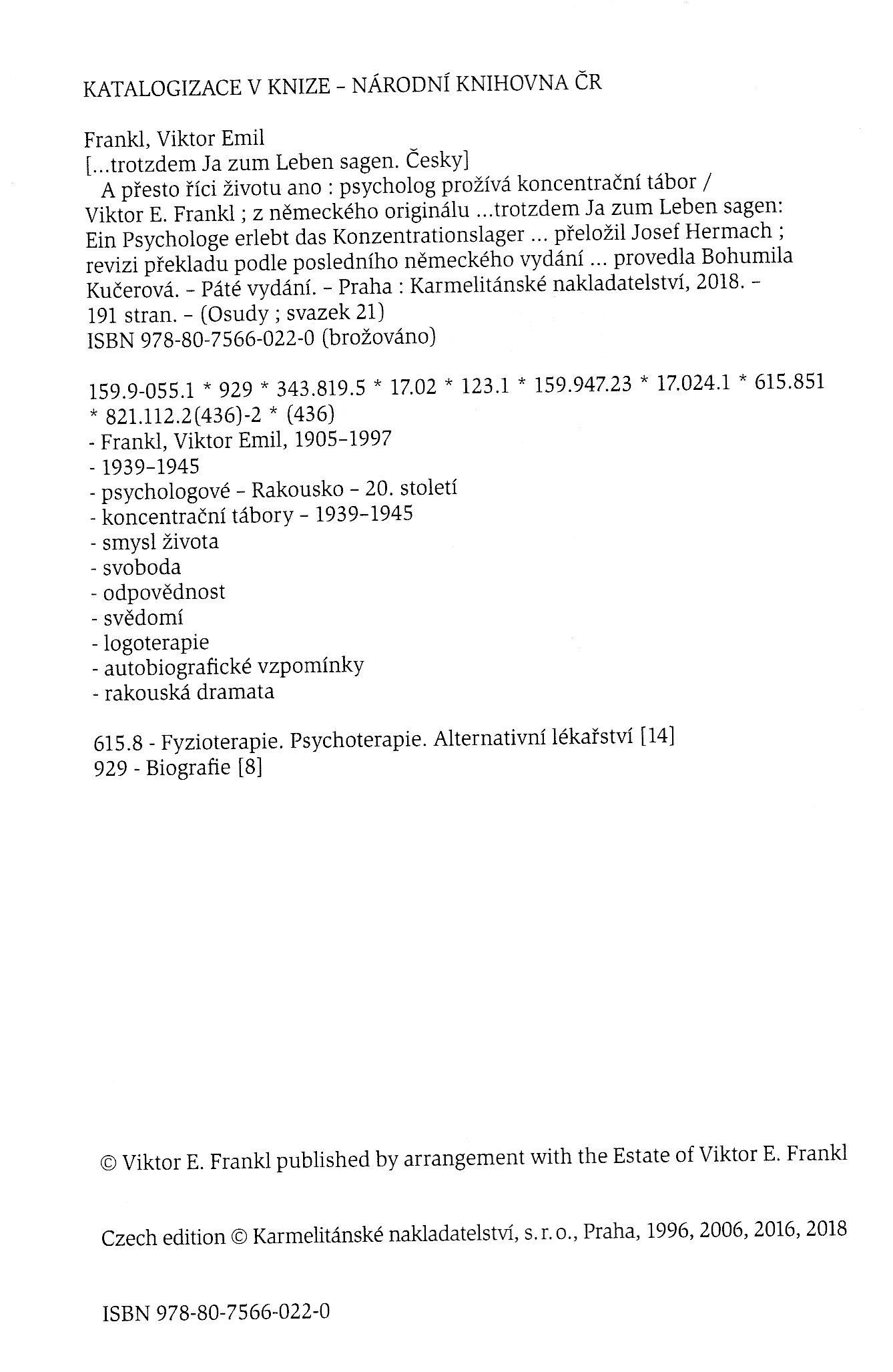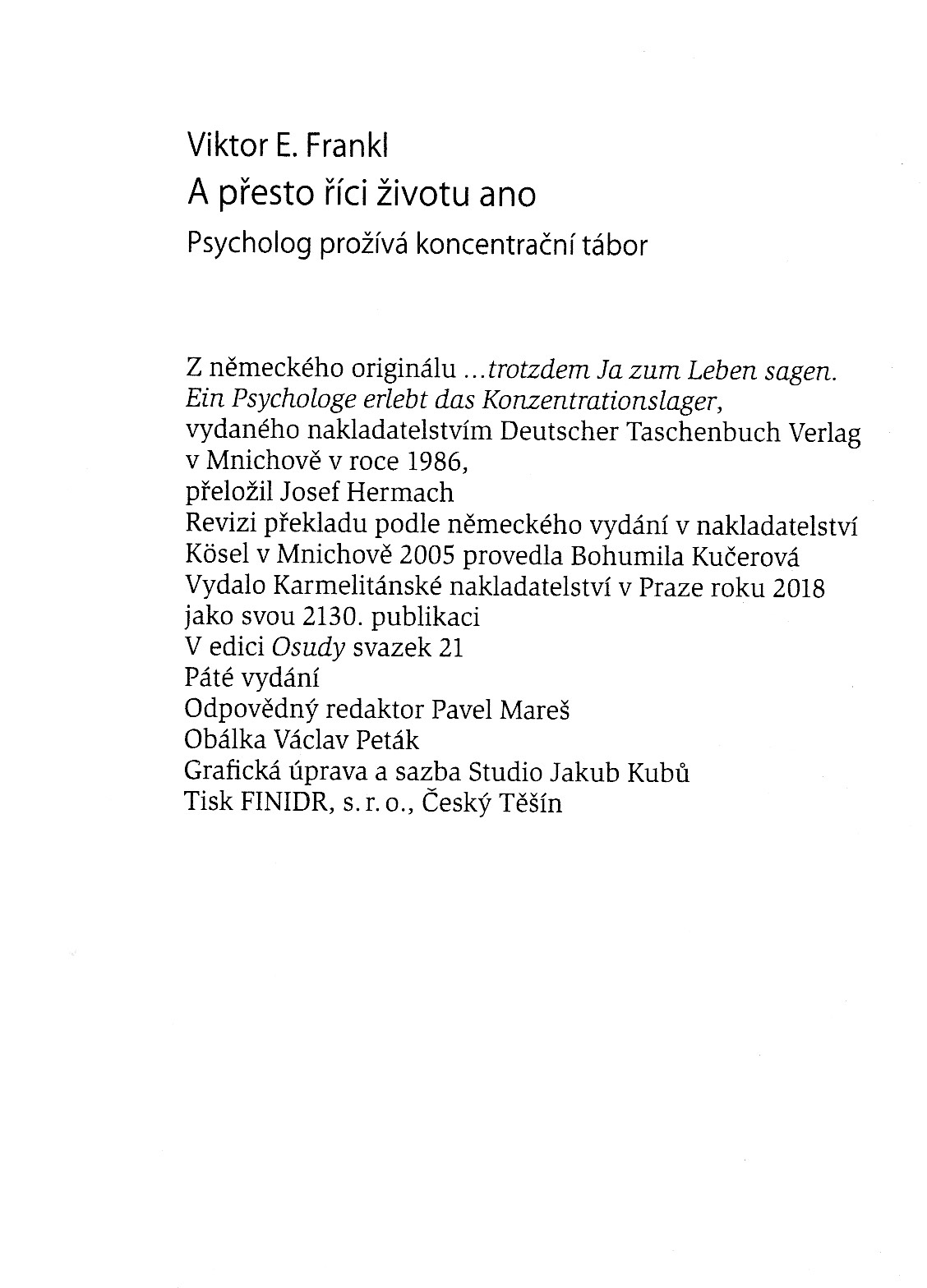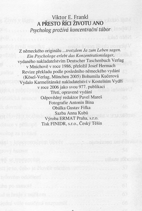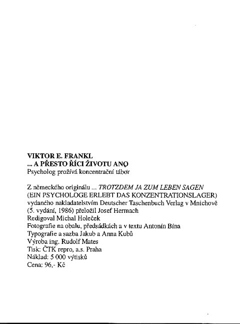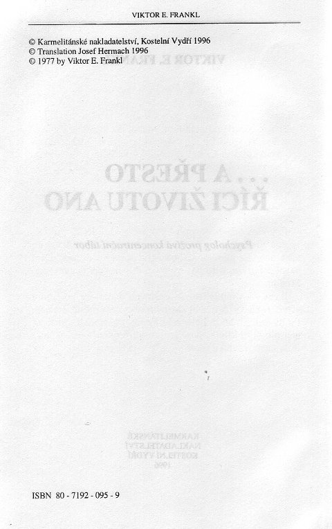 | ...trotzdem Ja zum Leben sagen. Ein Psycholog erlebt das KZ. ----- ... A presto rici zivotu ano: Psycholog proziva koncentracni tabor. |