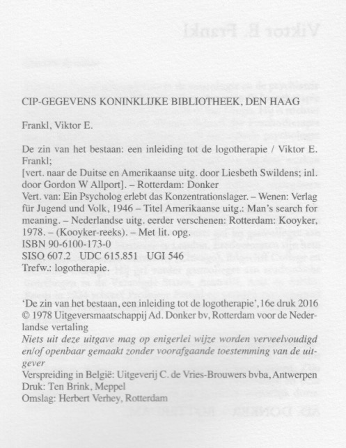 | Man's Search for Meaning ----- De zin van het bestaan |