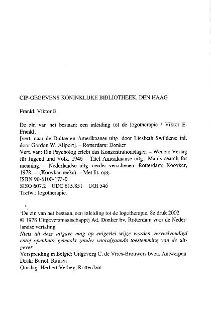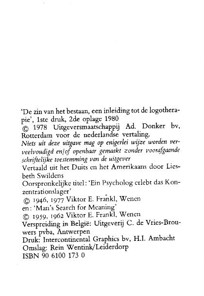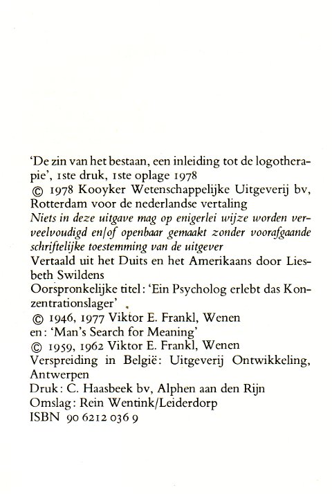 | Man's Search for Meaning. ----- De zin van het bestaan. Een inleiding tot logotherapie. |