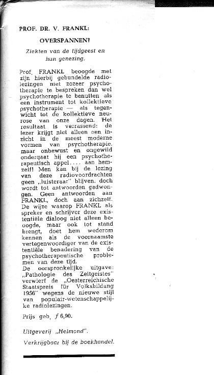 | Das Leiden am sinnlosen Leben. ----- Heeft het leven zin? Een moderne Psychotherapie. |
