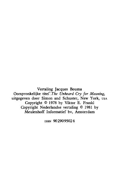 | The Will to Meaning. ----- De wil zinvol te leven. Logotherapie als hulp in deze tijd. |